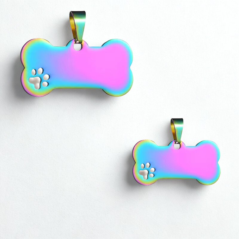 Stainless steel pet ID tag featuring a hollowed-out claw and bone design. Durable, lightweight, and ideal for engraving names, logos, or contact details. Suitable for dogs, cats, and custom pet accessories.